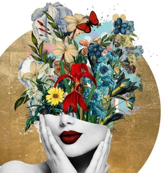 Captivating artistry, blending fashion, floral motifs, and metallic foils. A rising star in the art world.