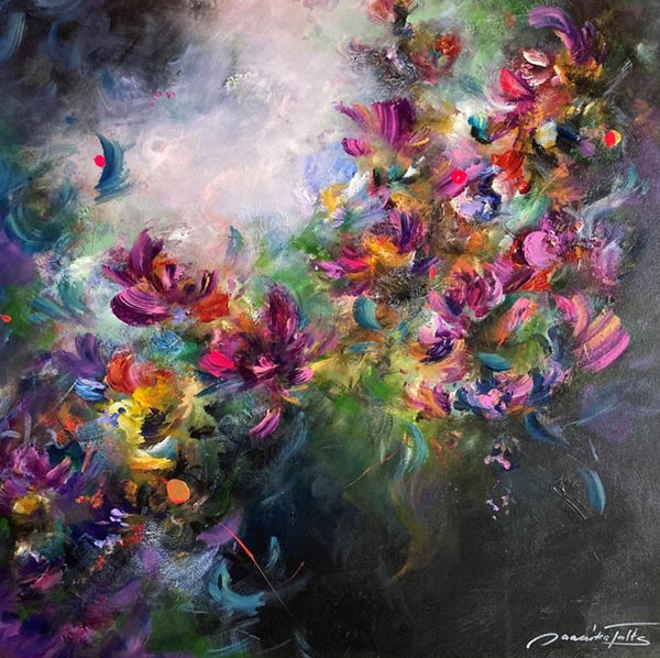 Jaanika Talts was born and raised in Estonia. She was drawing a bit like every child would do, but her life from the age 5 to 40 something, was filled with everything but art or anything remotely arty. She studied physiotherapy in Finland, lived in Sweden, somehow (long story) ended up in Ireland and after many years working in the beauty industry, running her own salon, she felt tired, bored of it all, and still restless. Life has a beautiful way to fix things, and after few very traumatic months that came out of nowhere, she discovered a way out. This time without running away or moving to another country. She made friends with a canvas that was happy to accept all her moods and tantrums, each brushstroke was like a secret language between the painter and the surface and the colours were words unspoken.