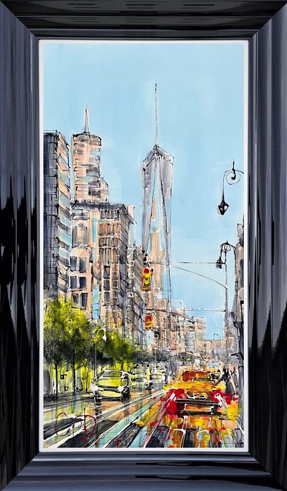 Mixed Media abstract cityscapes on board created in Nigel’s unique drip style technique.
